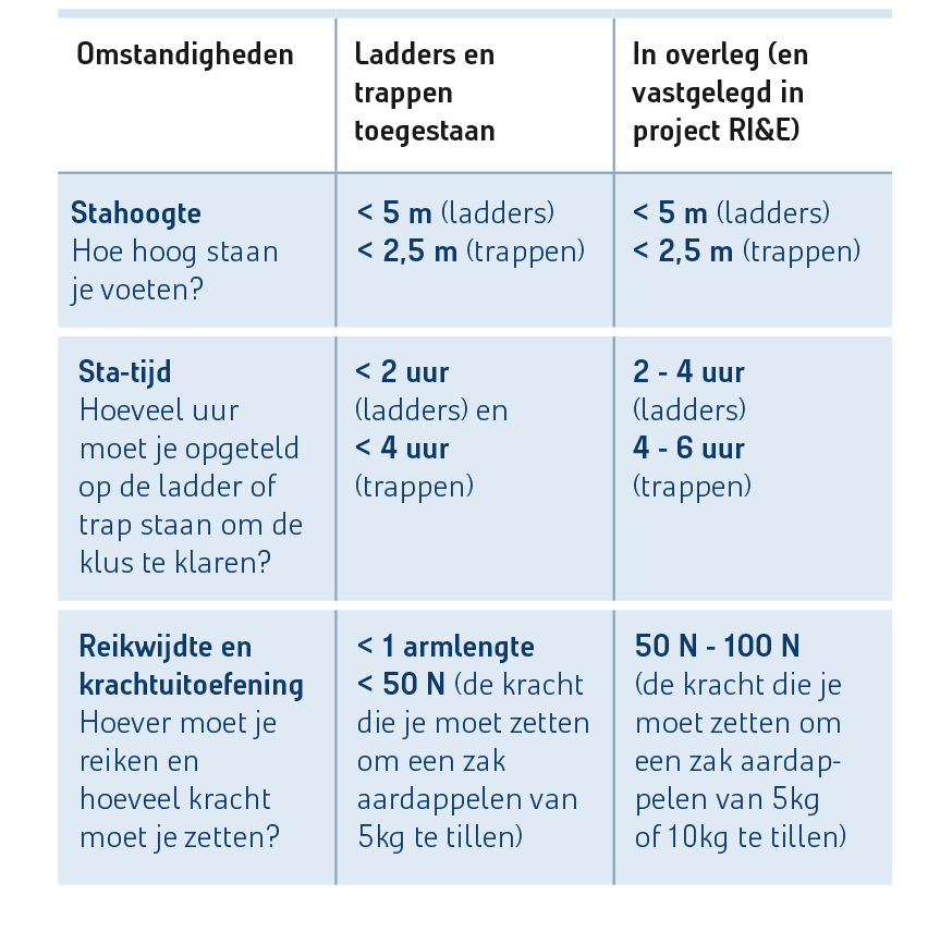 • Leg zware materialen en gereedschappen niet op de grond maar op werkhoogte neer (als dat kan).