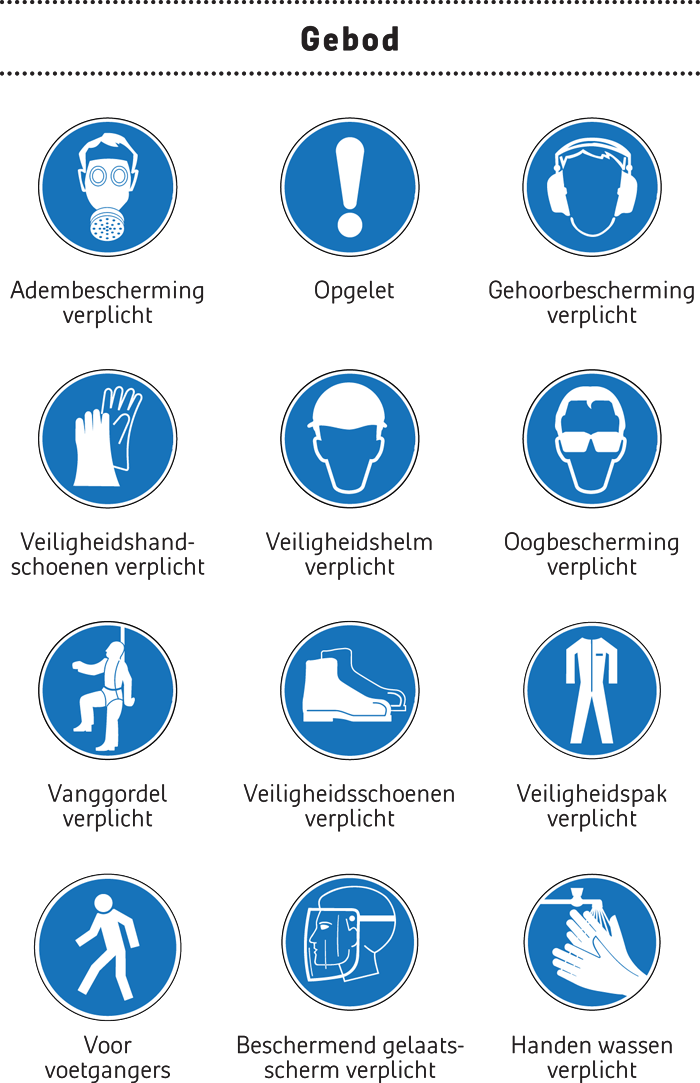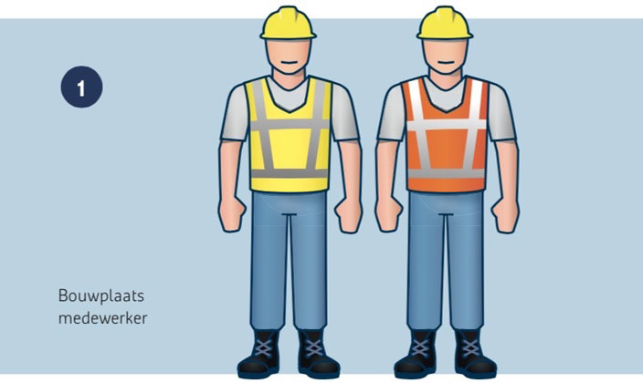 Op alle bouwplaatsen1 ben je verplicht om een bouwhelm, veiligheidsschoenen en reflecterende kleding te dragen. Ook moet je een veiligheidsbril binnen handbereik hebben.